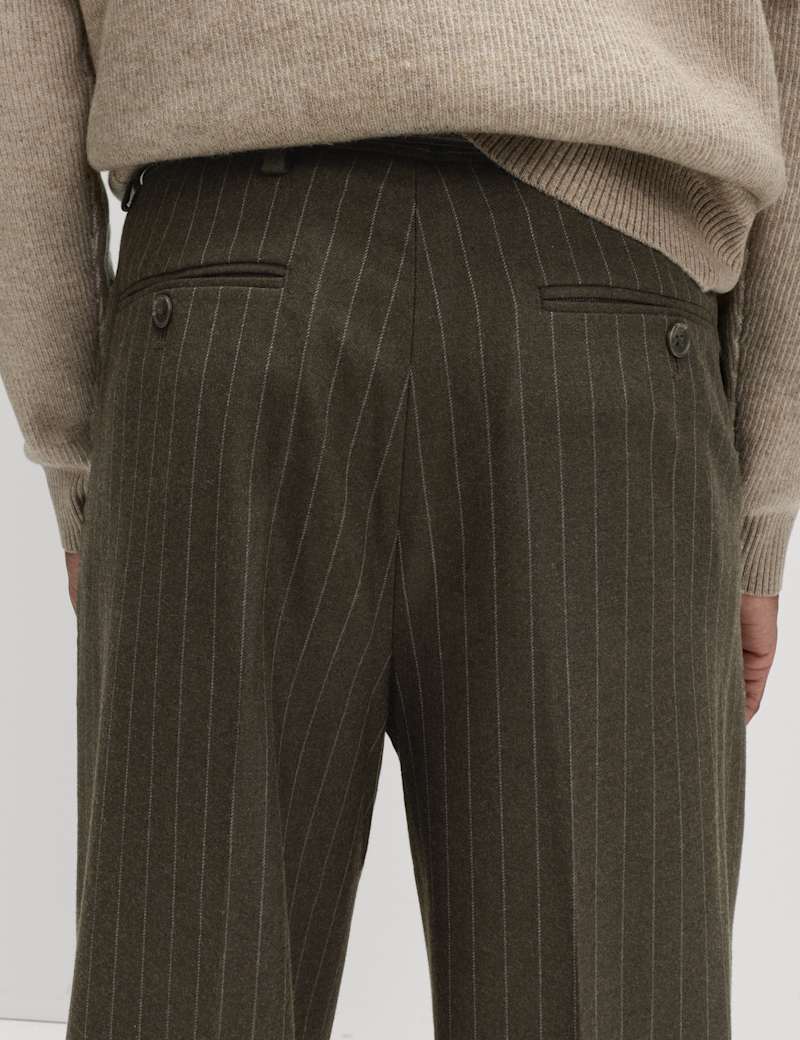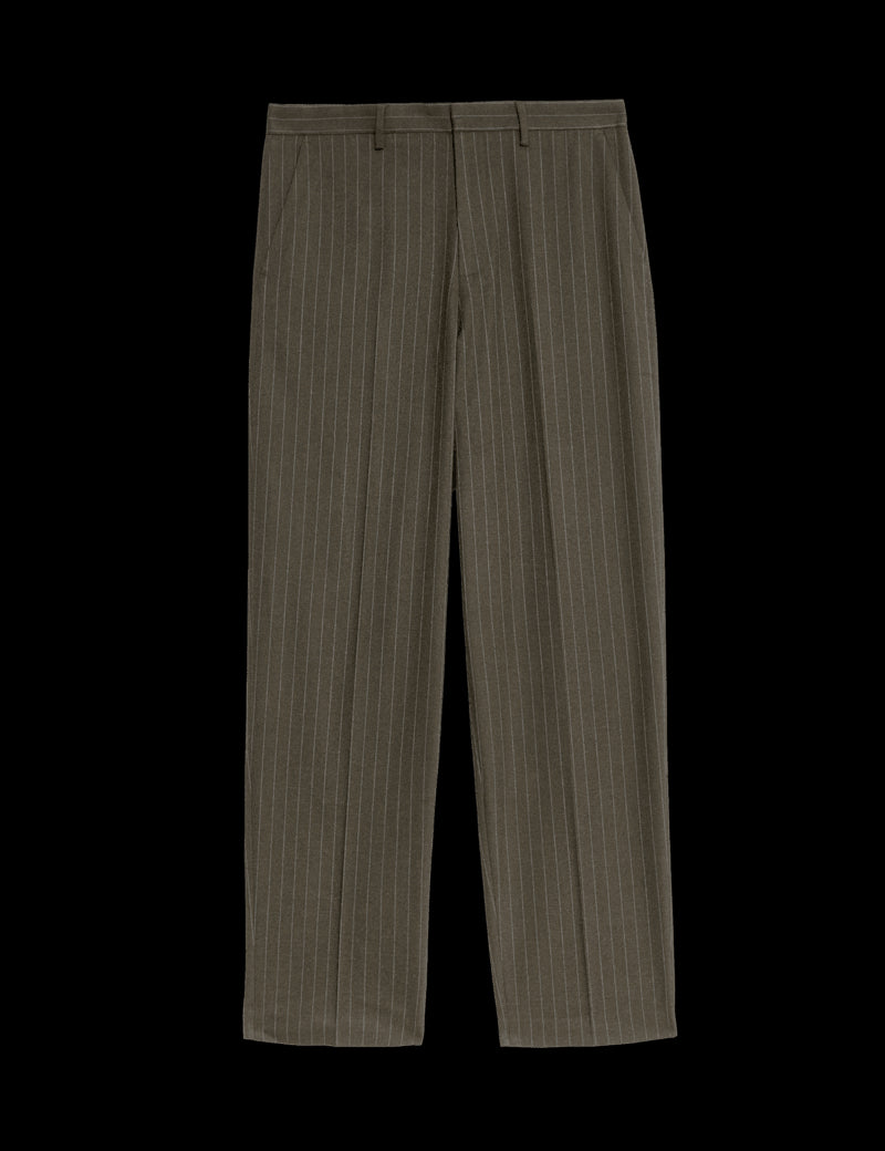 These pinstripe trousers are made from warm handle fabric for a cosy feel. They're cut in a roomy relaxed fit with a neat flat front. Added stretch offers easy movement, while a hook bar and zip fastening ensures a secure finish. M&S Collection: easy-to-wear wardrobe staples that combine classic and contemporary styles.