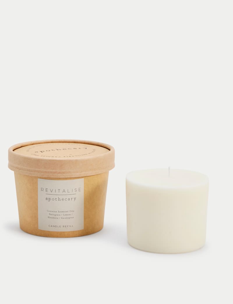Discover a new scenting favourite with the Revitalise candle and refill set from the Apothecary collection. This fragrance combines essential oils of petitgrain, lemon, mandarin and eucalyptus to create a tranquil and uplifting atmosphere. The gift-ready packaging contains a glass jar candle and one candle refill.