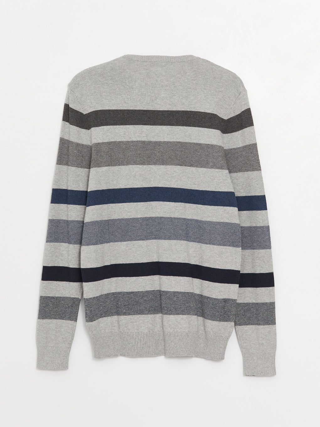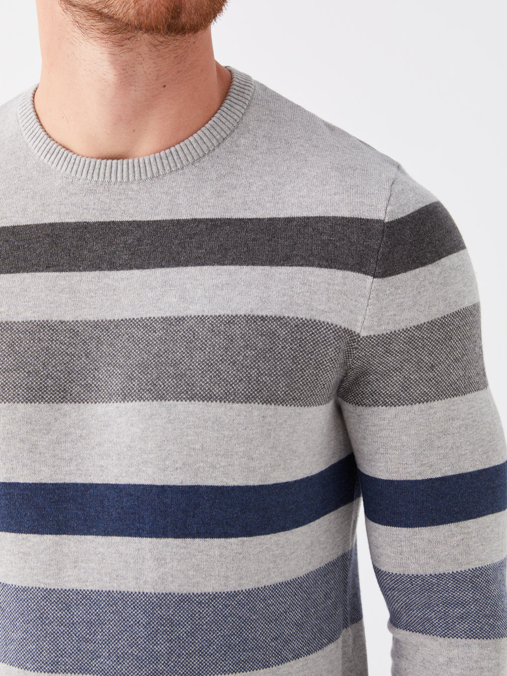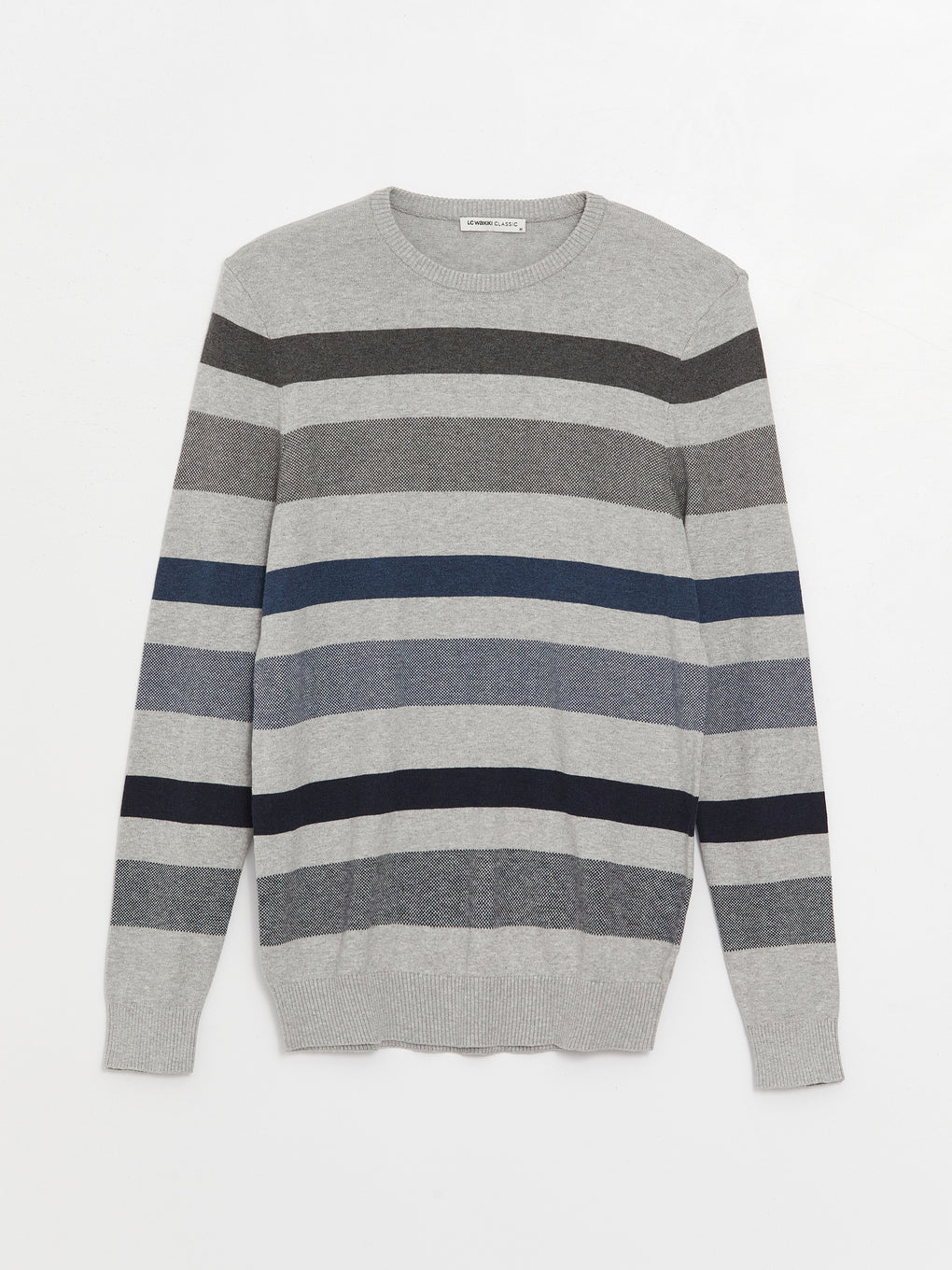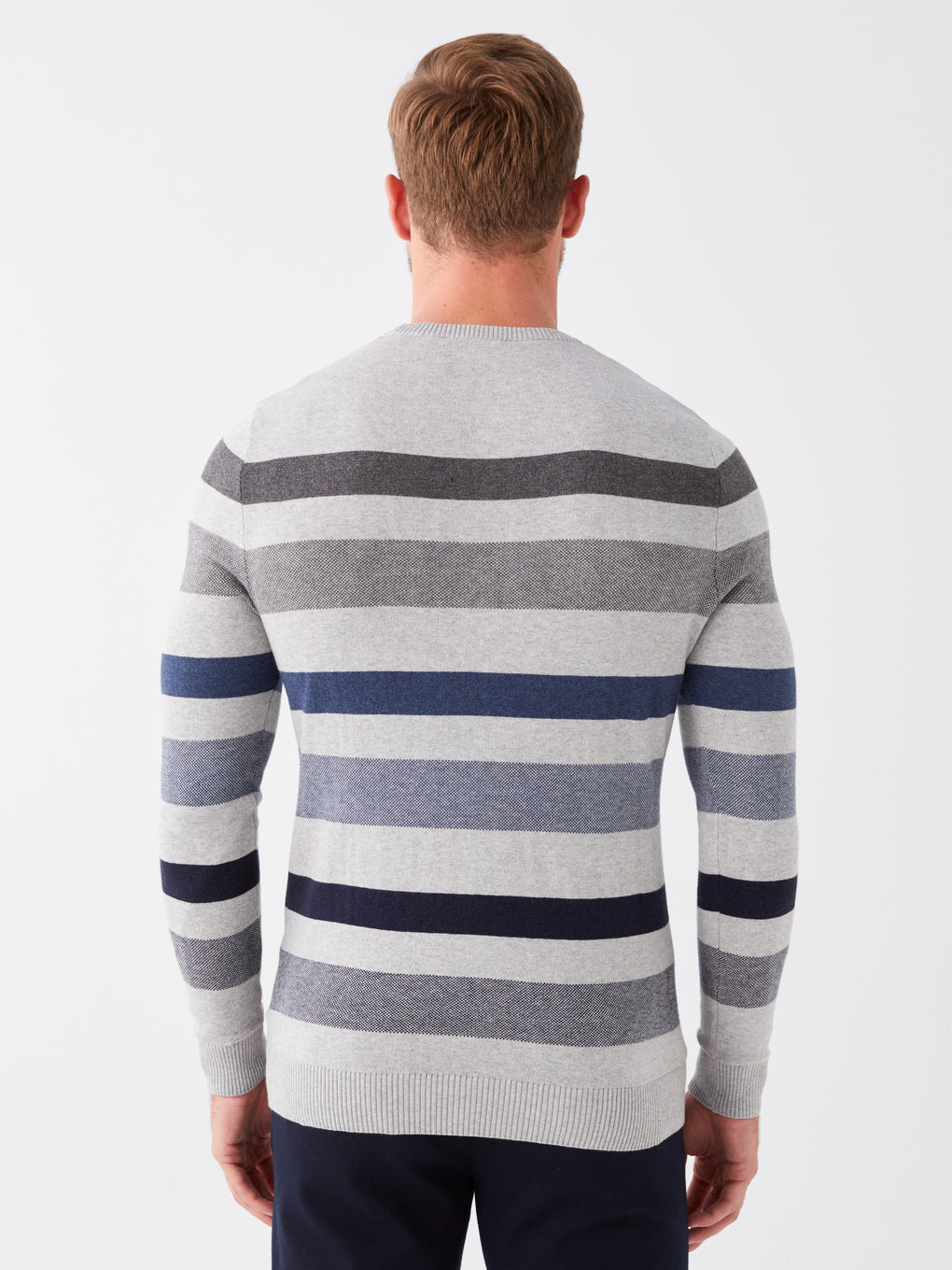 Crew Neck Long Sleeve Striped Men's Tricot Sweater