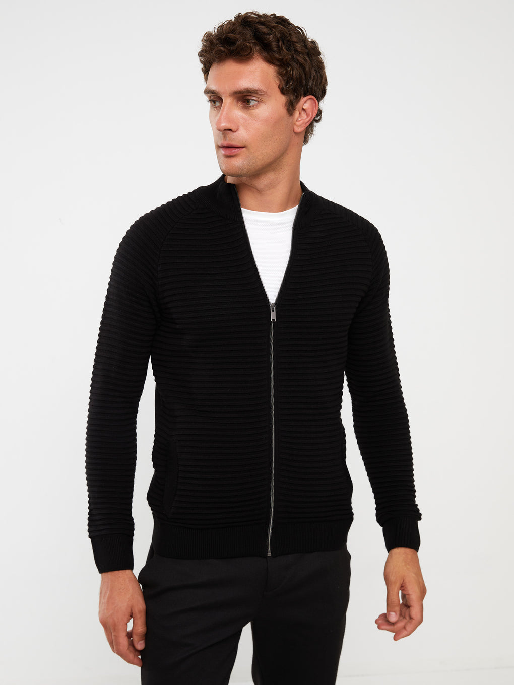 Standard Fit Turtle Neck Men's Tricot Cardigan