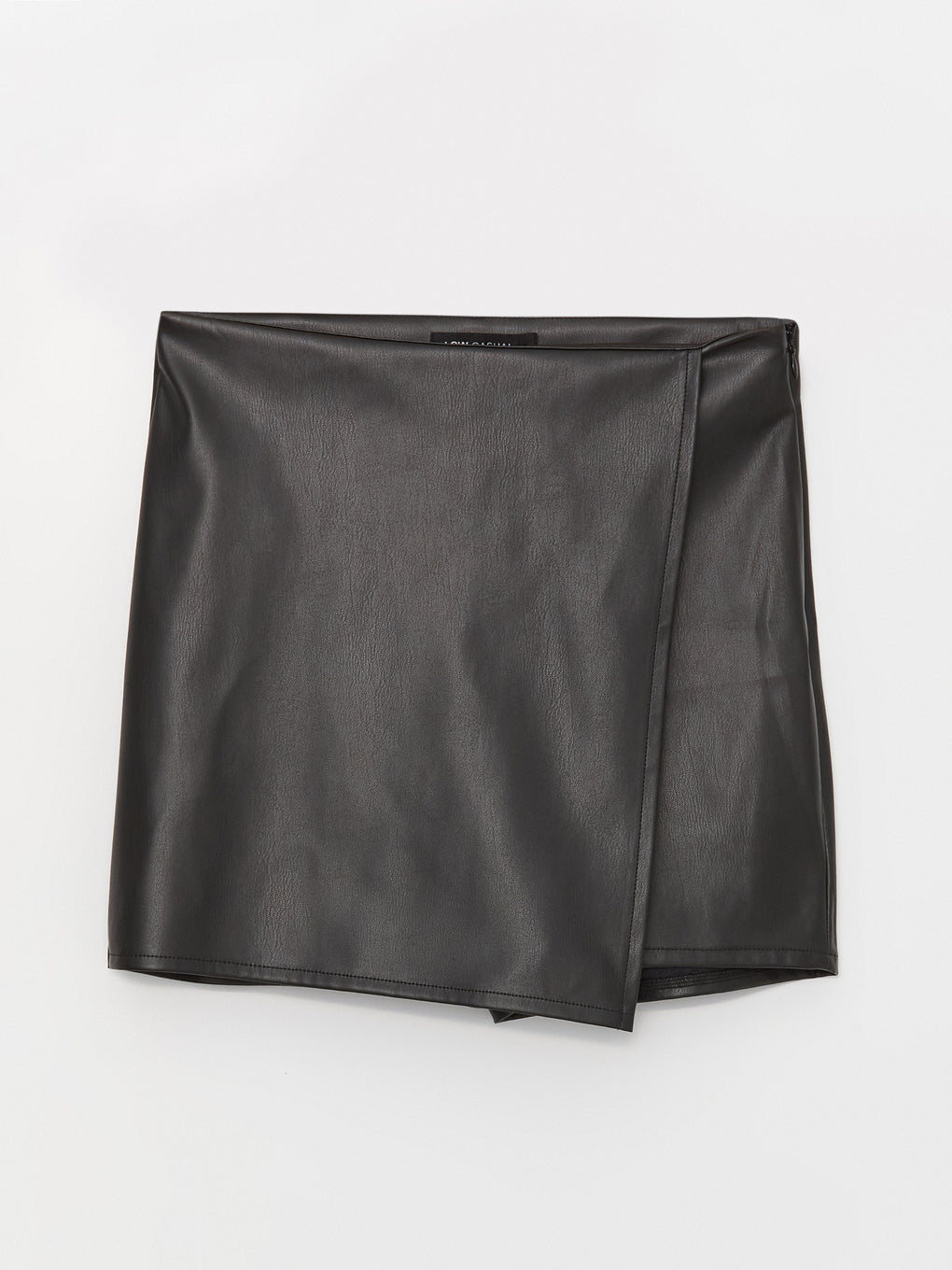 Women's Tight Fit Leather Look Straight Shorts Skirt