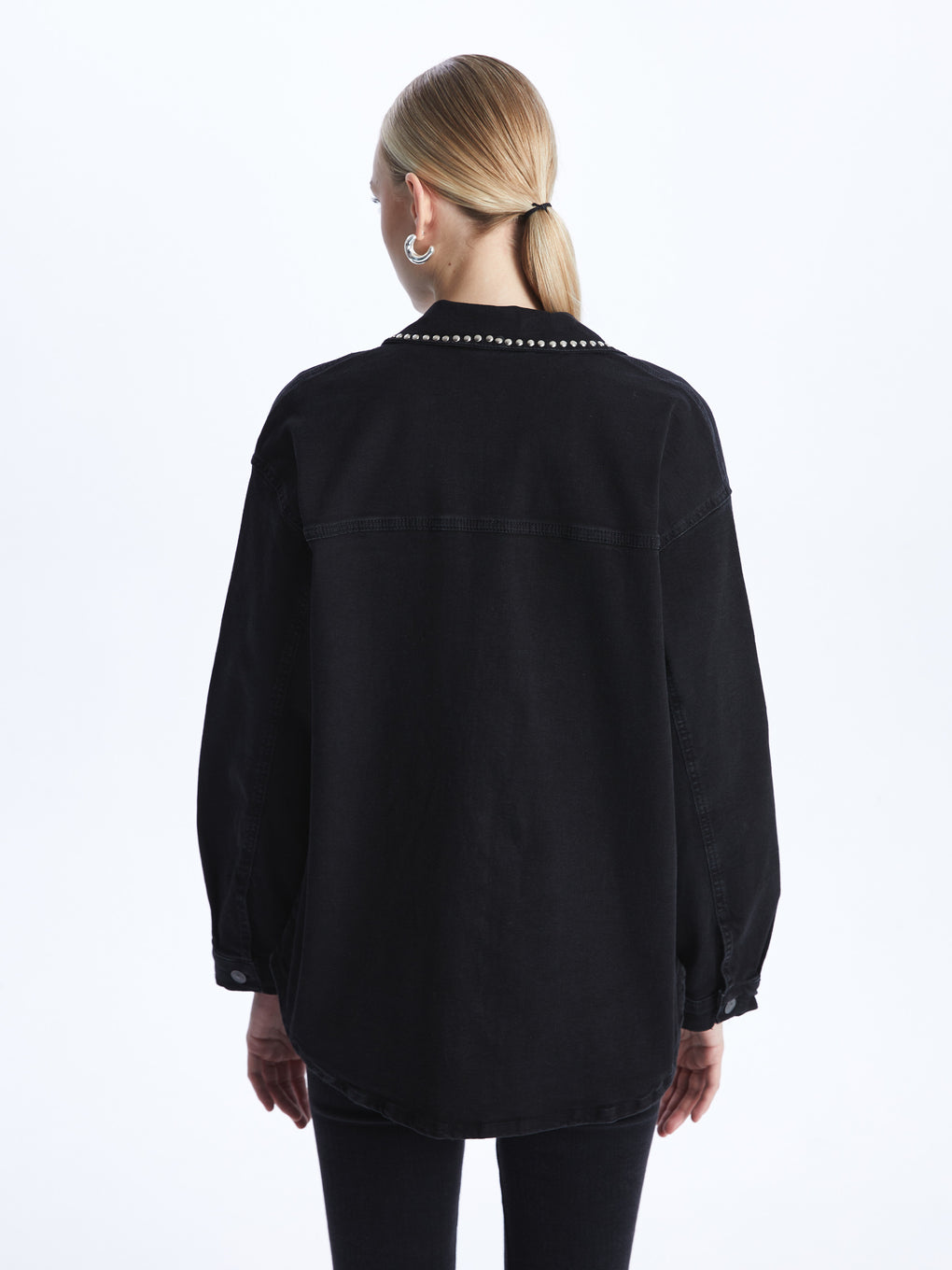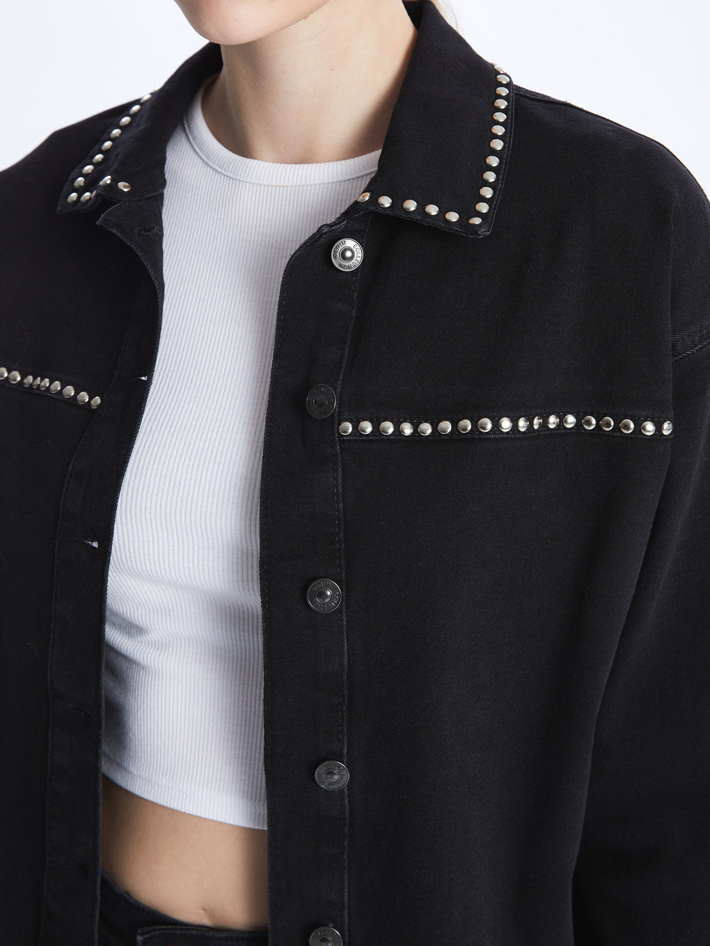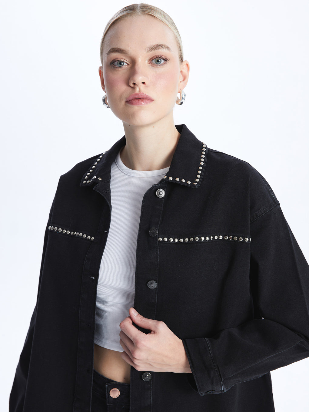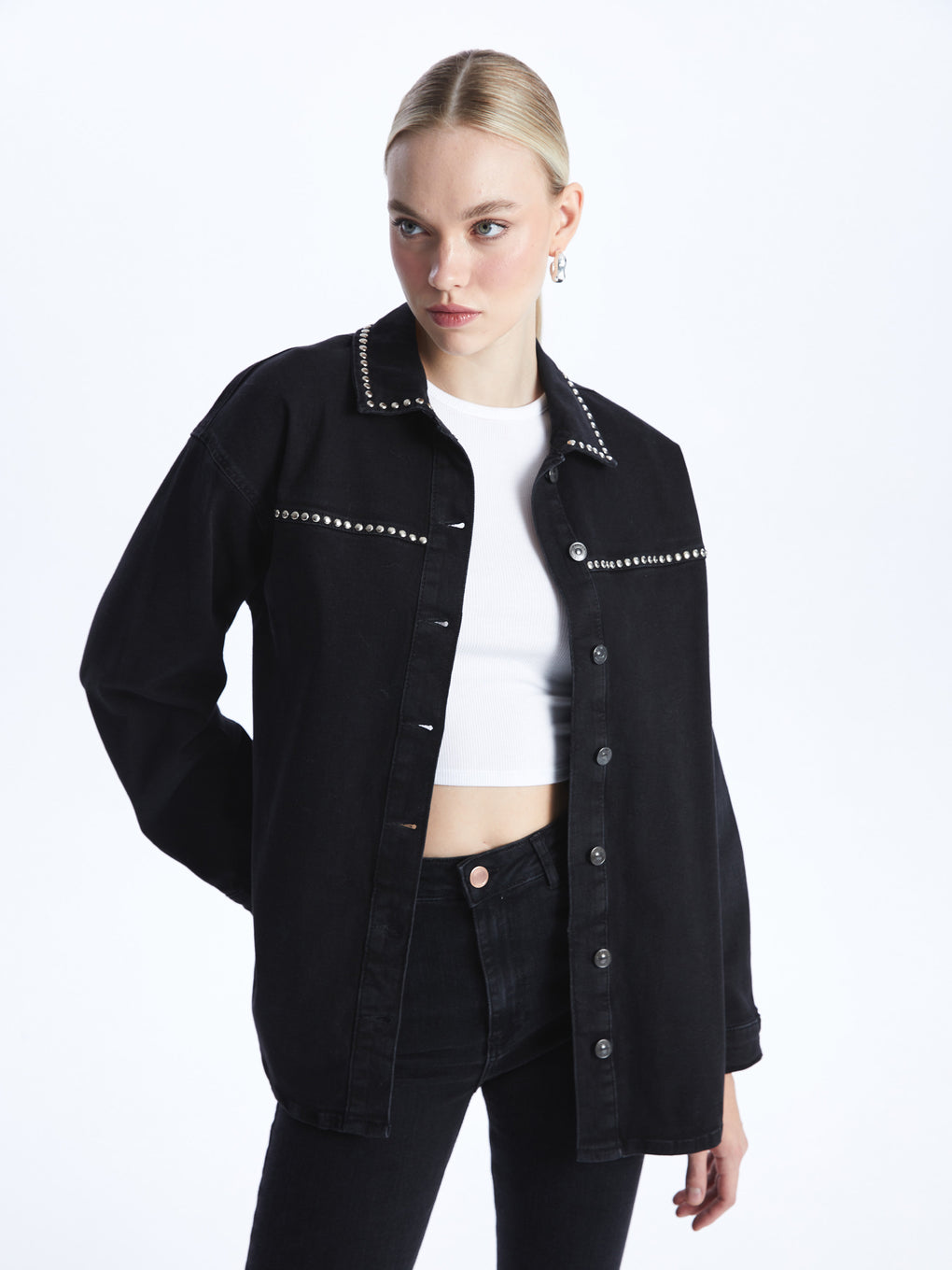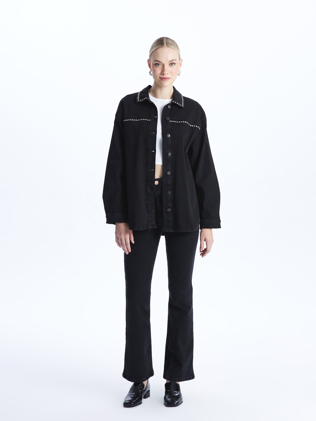 Shiny Stone Printed Long Sleeve Women's Jean Shirt